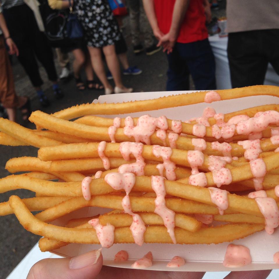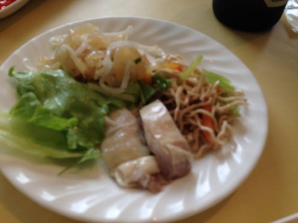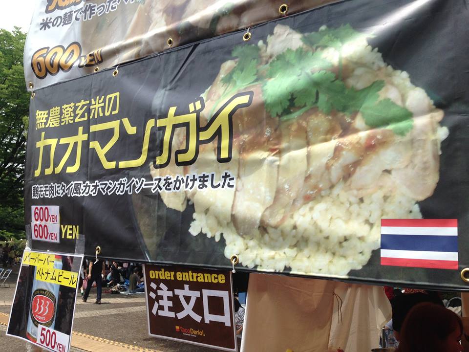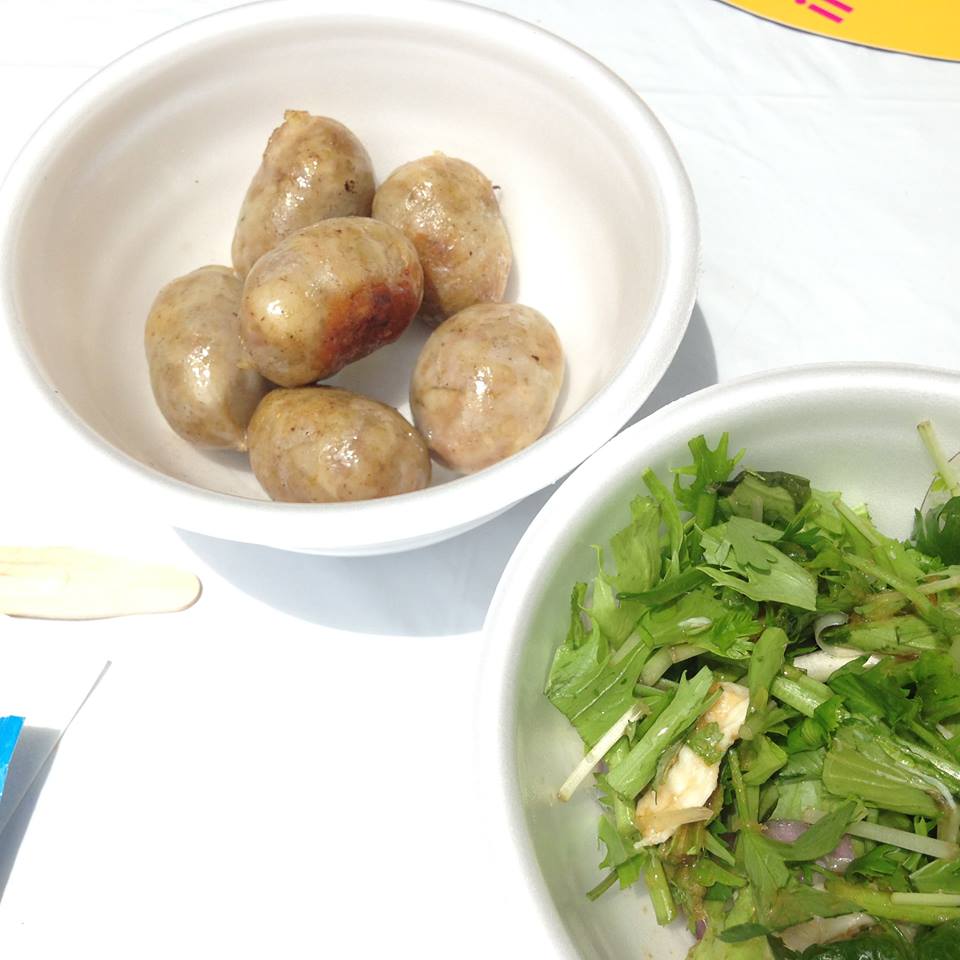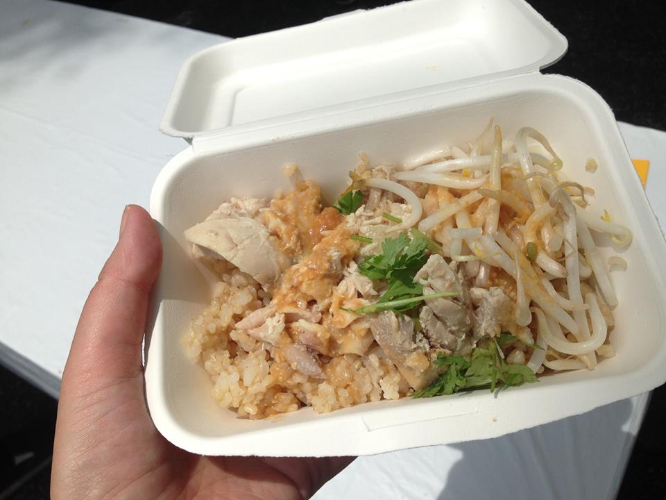 で、2~3人しか並んでいないところで、ベトナムのお米を使ったカオマンガイという料理と、ソーセージ、パクチーサラダを食べました。美味しかったけれど、ベトナムというよりタイだったかな?