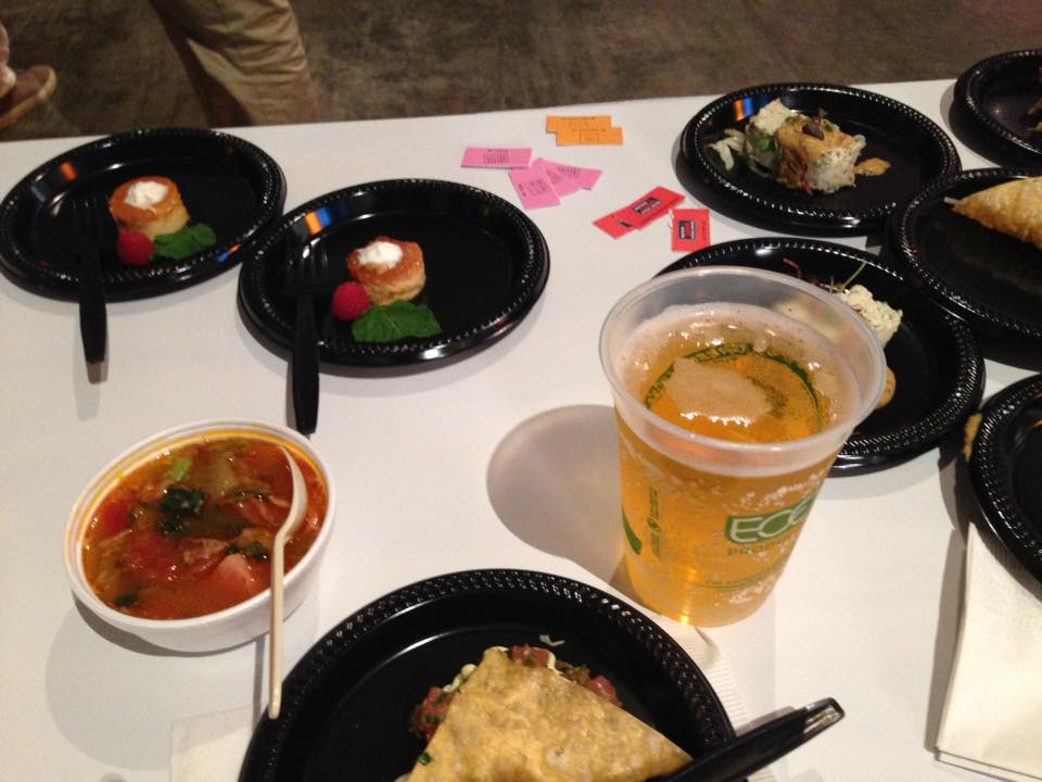 パーティーの入場券にはチケットがついていて、それぞれのお店のブースでお料理と引き換えるようになっています。もちろん5店舗すべて回りました。