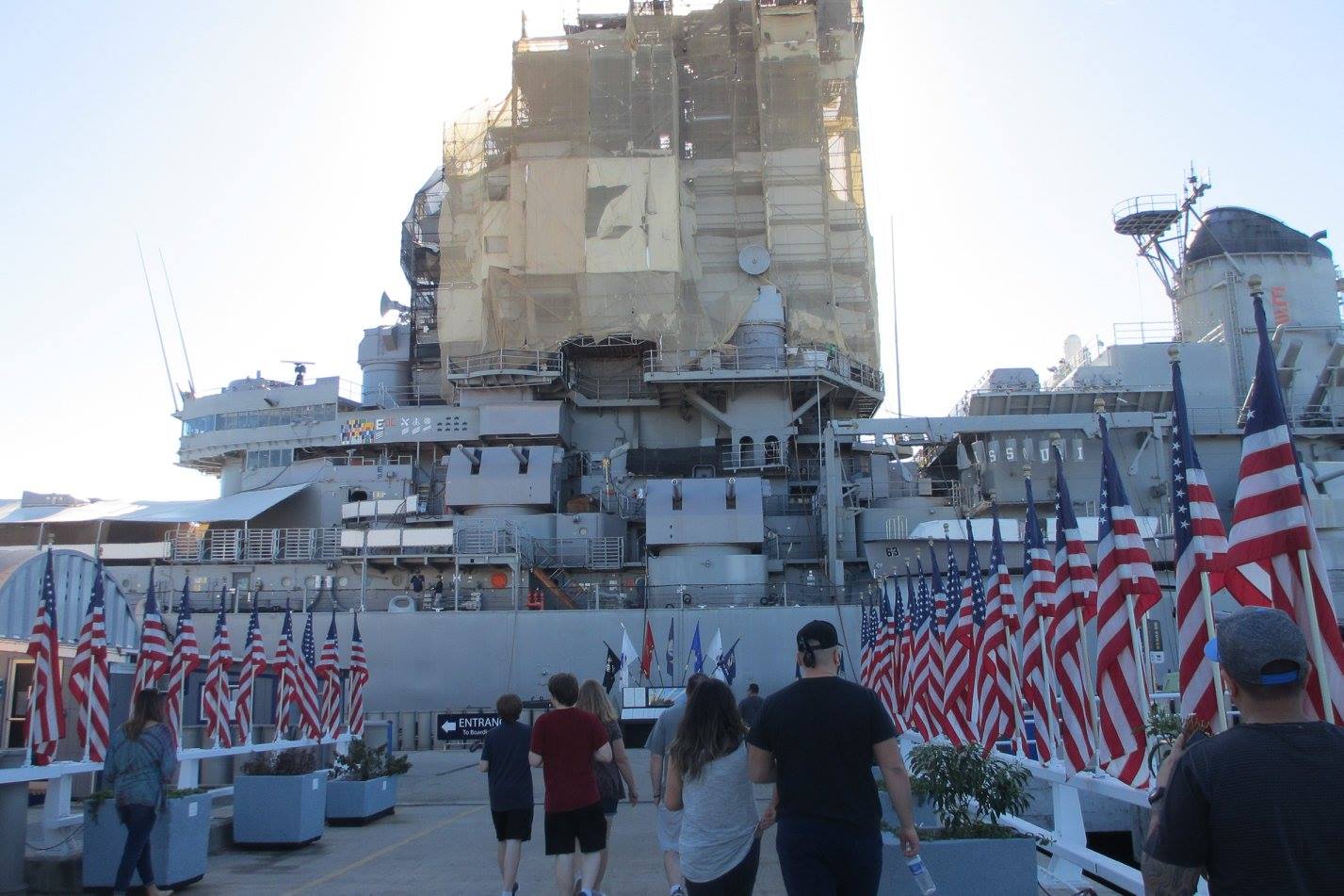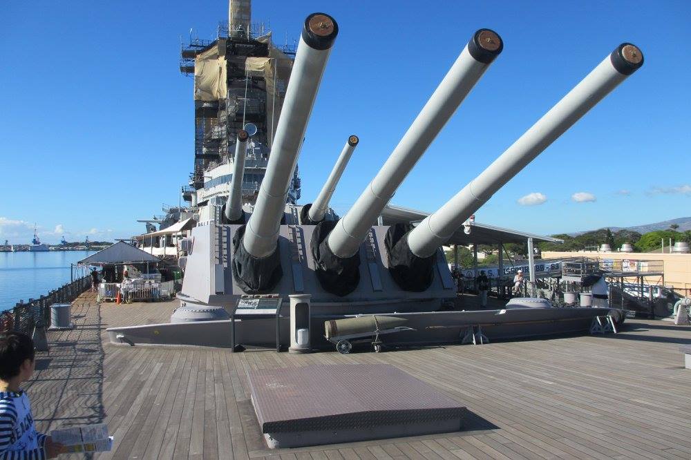 戦艦ミズーリ記念館。上部は現在修復工事中。私はハワイスペシャリスト検定中級の会員特典で無料で入れるのです。