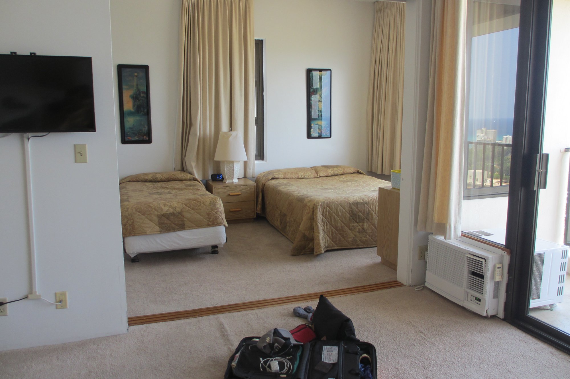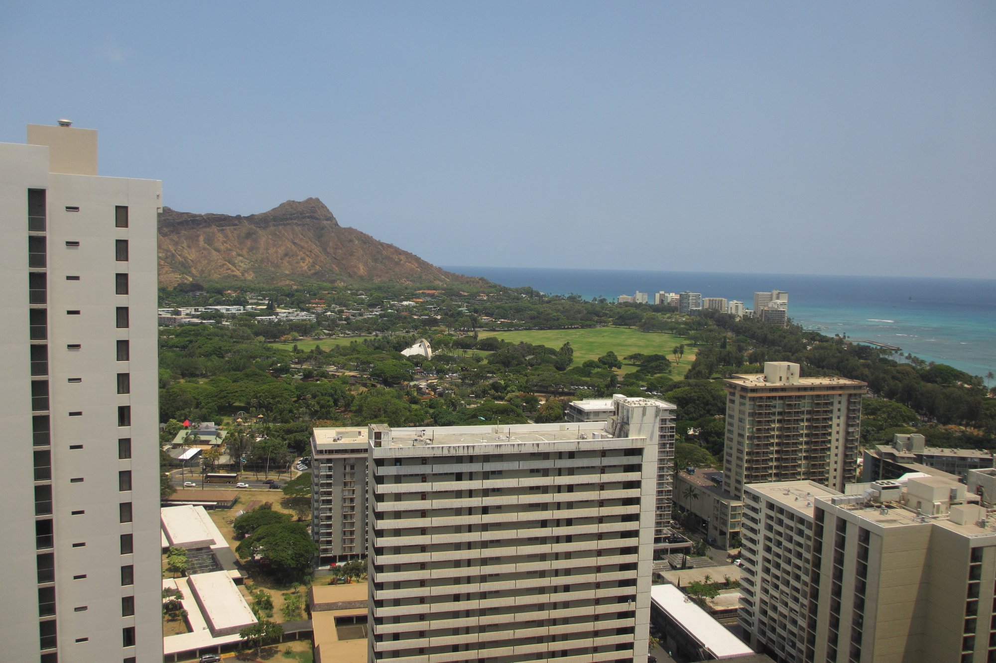 3701号室。最上階37階の角部屋です。部屋の窓からダイヤモンドヘッドと海が見えます。