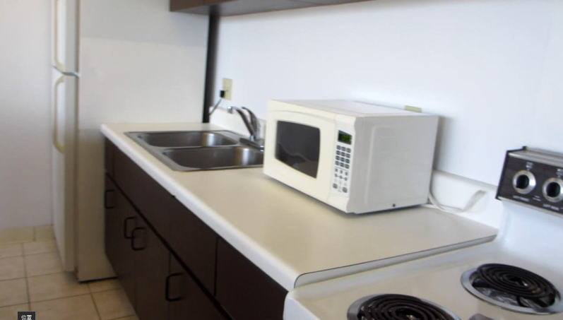 電子レンジに大型冷蔵庫。コンロもオーブンもあります。滞在中、ファーマーズマーケットで買い物してお料理できたらいいな。