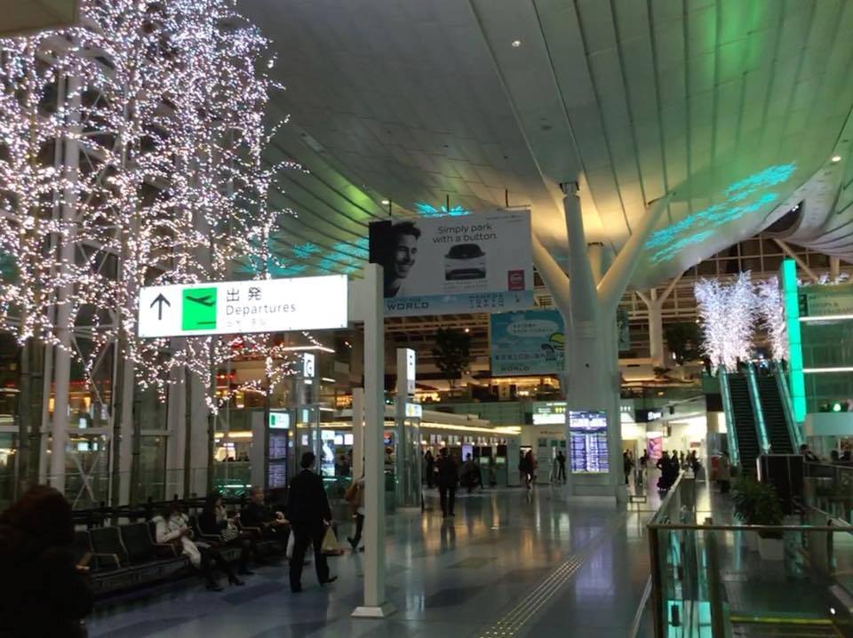 羽田からハワイアン航空です。クリスマスシーズンの羽田はキラキラきれい!