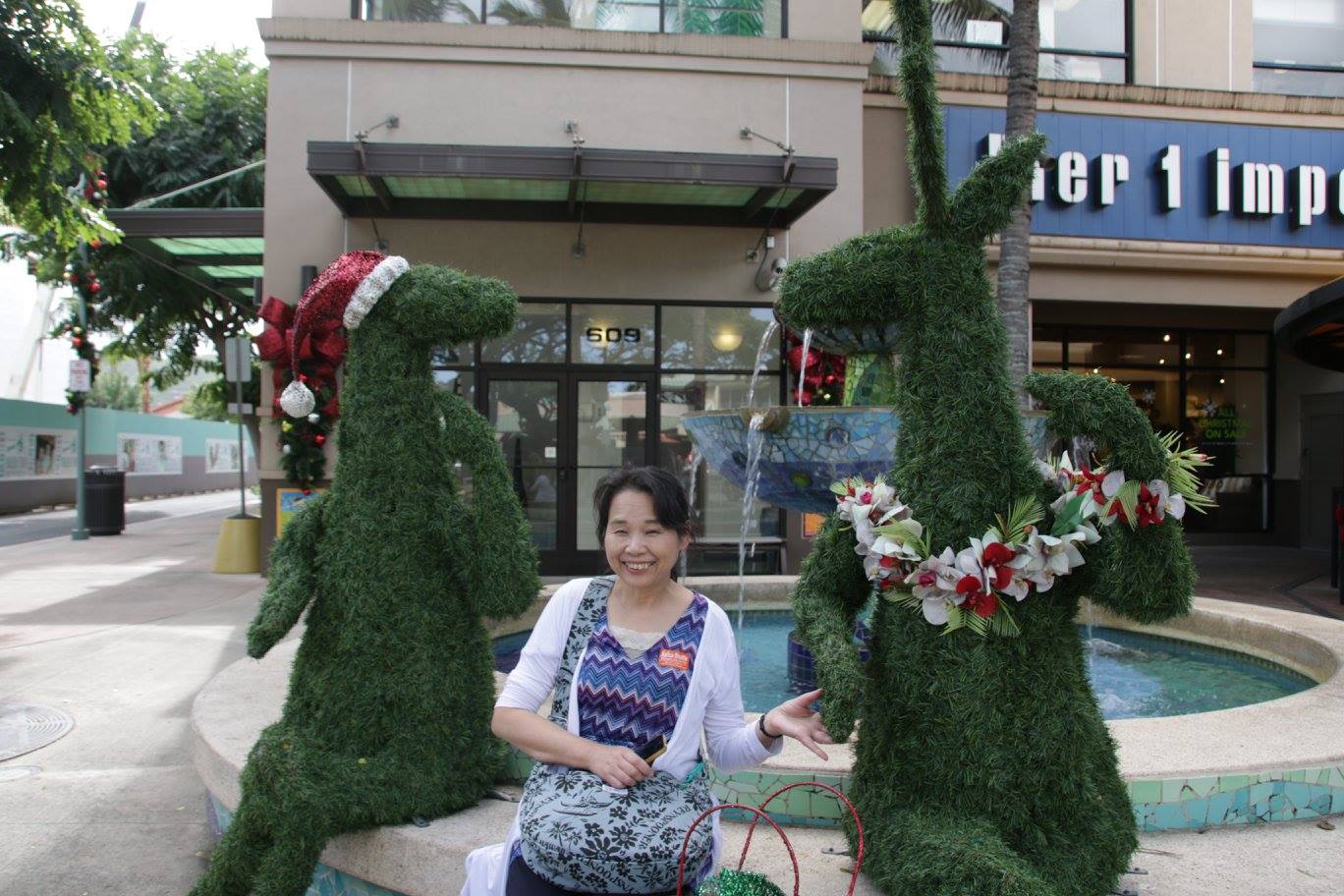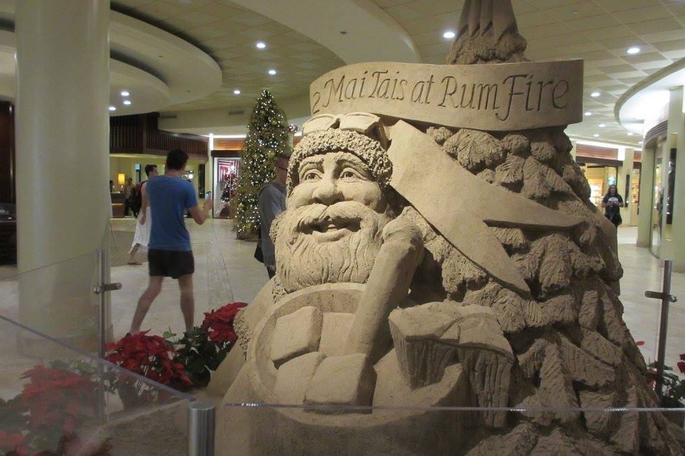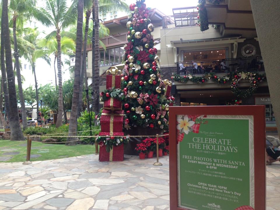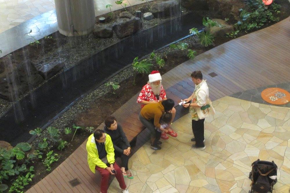 インターナショナルマーケットプレイスのサンタさんは短パンにビーサンです。ハワイならでは。