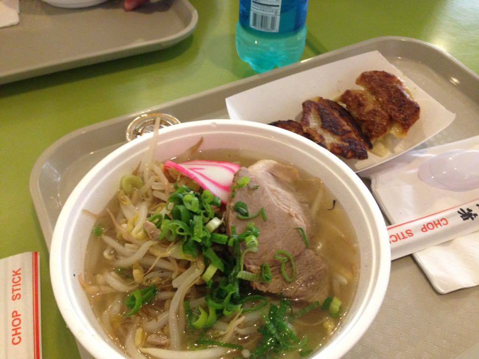 お昼を食べようと、フードコートにてラーメンを注文。HISでもらったパンフに餃子無料券がついていたので餃子も。ハワイに着いたのに、まだ頭の中が日本だ(笑)