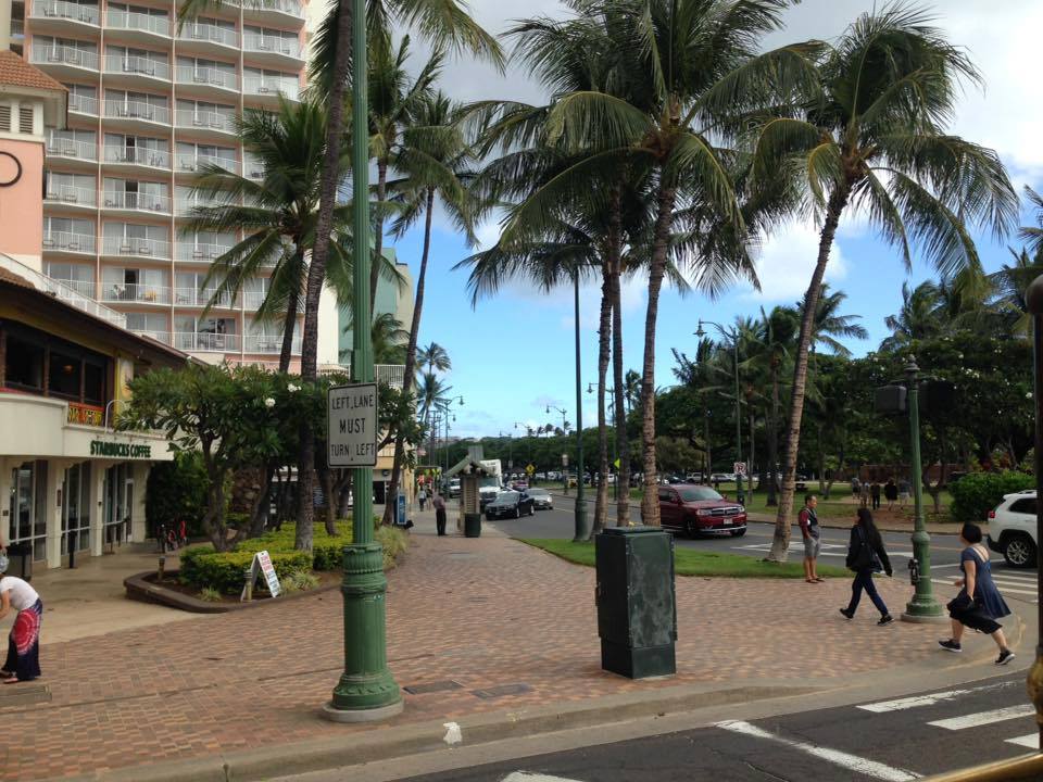 ワイキキに到着。到着後、レンタルWi-Fiルーターを受け取りに行ってから、ロイヤルハワイアンセンターへ。