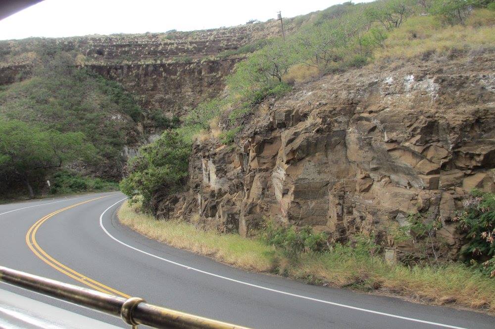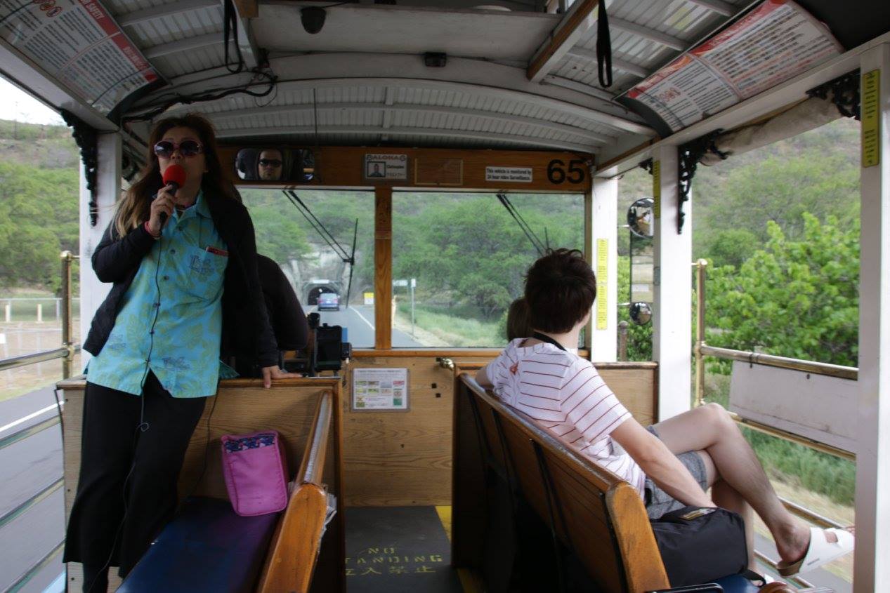 乗ってから気づいたのですが、このトロリーはガイドさんが乗っていて説明を聞きながら、ダイヤモンドヘッドをぐるりと回ってから街に行くというものでした。