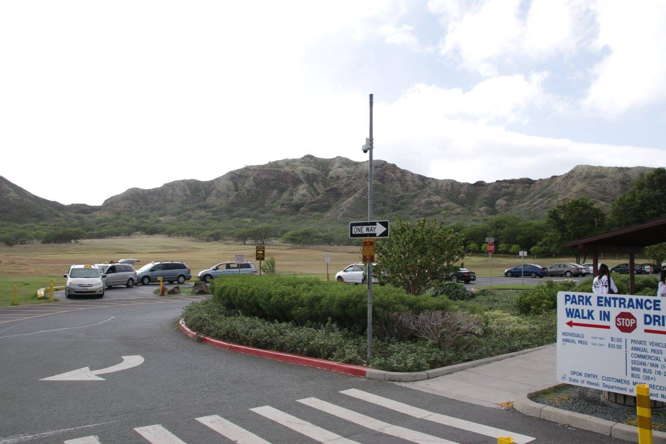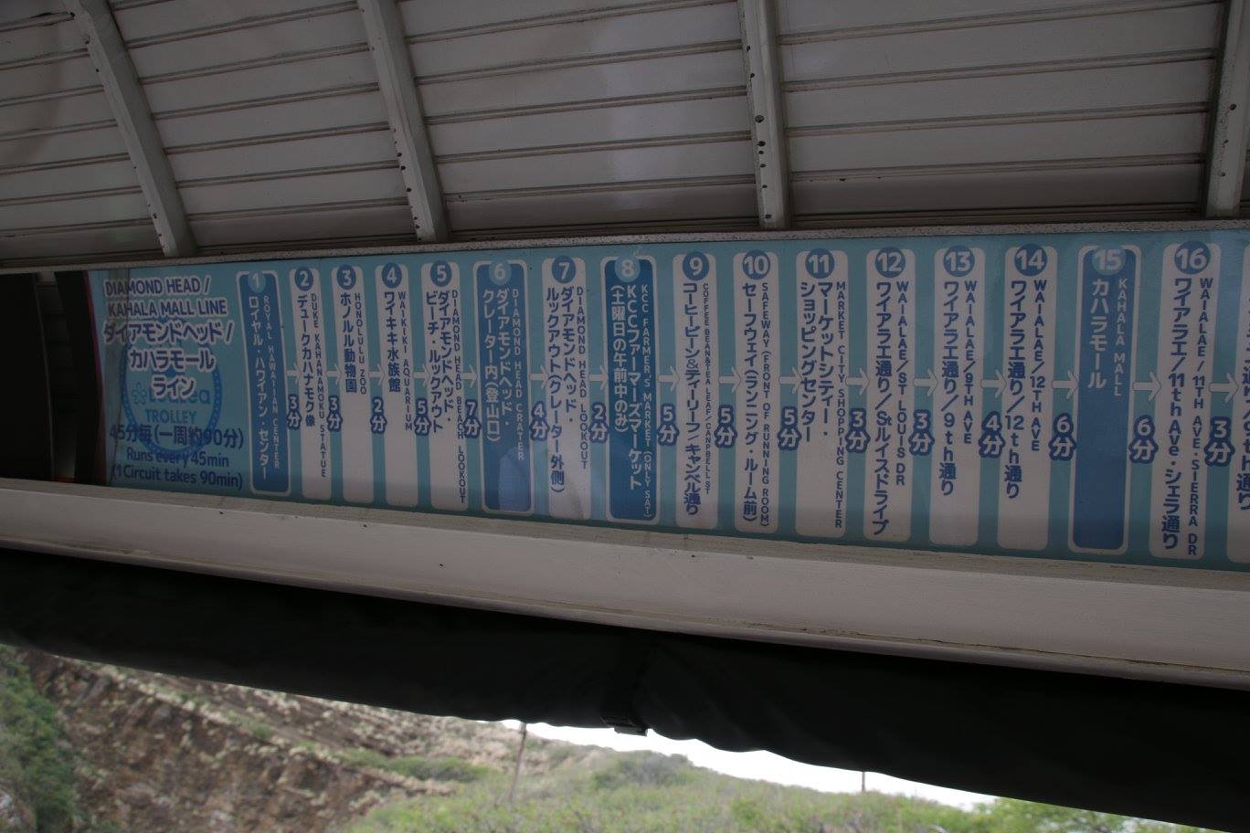 ダイヤモンドヘッドのクレーターの中まだ入っていきます。ここに登山口があるので、ダイヤモンドヘッドに登る時はこのトロリーを利用すると便利です。今回は無理ですが、いつか登ってみたいですね。
