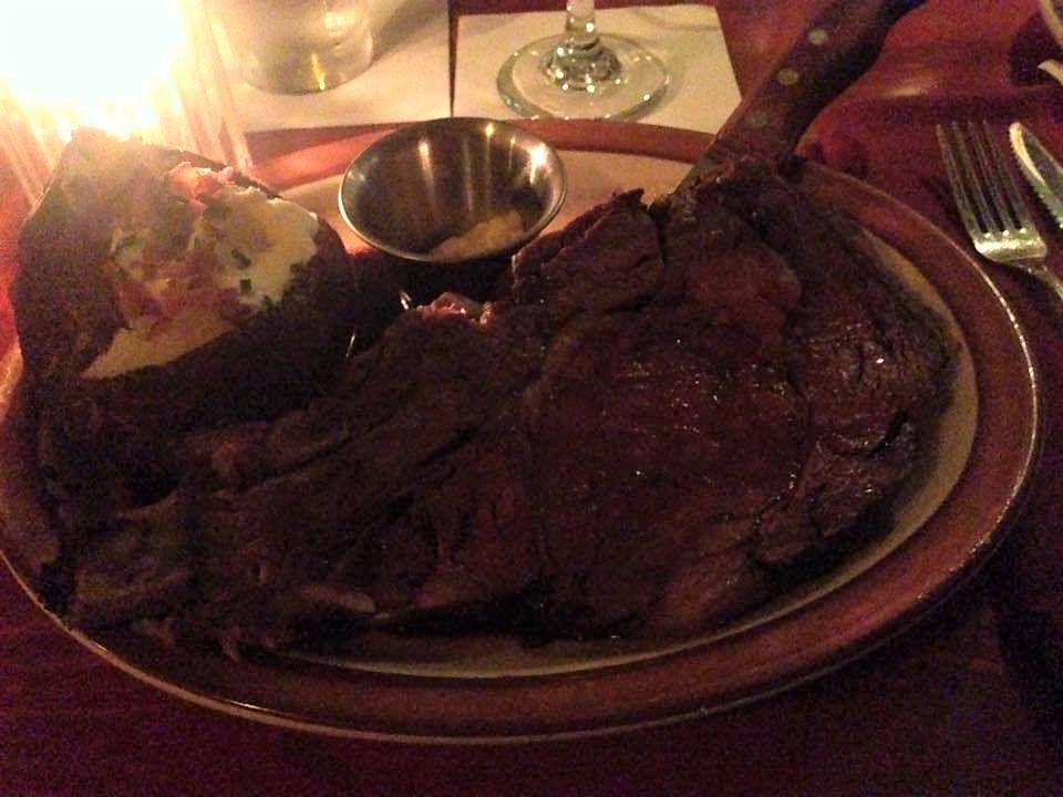 そして、サラダバーに行って、サラダやスープ、パンを取ってきて、メインはプライムリブステーキ。柔らかくて美味しかったです。お肉も付け合わせのベイグドポテトもすっごく大きくてお腹いっぱい。デザートのマカダミアナッツアイスを別腹でいただくともう何も入らないといった感じで、食後のコーヒーを辞退し、お店をあとにしました。