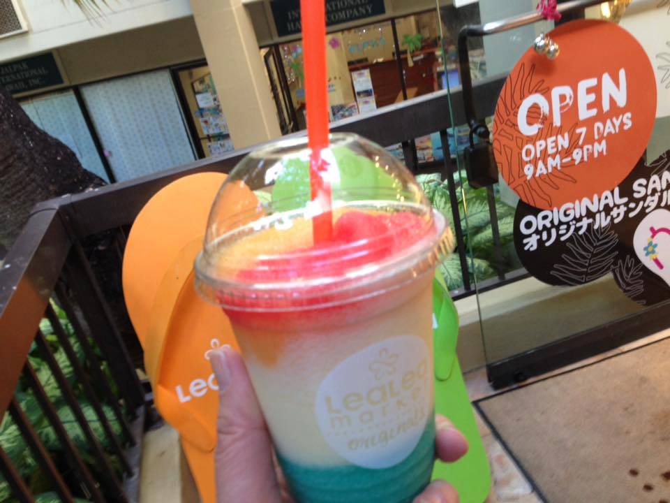 LeaLea Market Originalsというオリジナルのビーチサンダルが作れるお店で、スムージ。6種類のハワイアンフレーバーを自分で選べます。4種類入れてみました。
