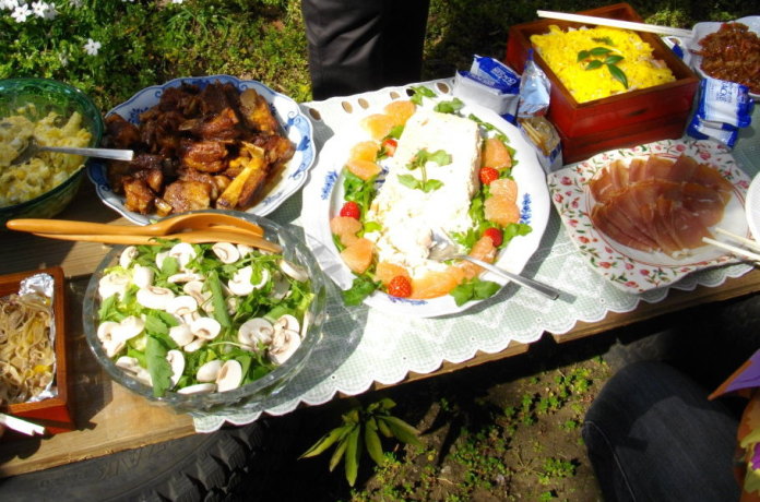 毎年恒例。お庭に大きな桜の木がある友人のお宅でのお花見パーティー。