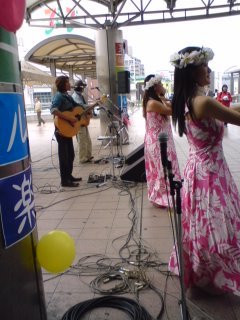 よく、カフェojisanchiのライブでも見かけるハワイアンのkailuaは、この日は、ペデストリアンデッキと掛け持ち出演。