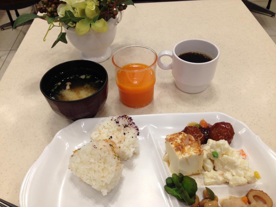 他の東横インと同じようで違う朝ごはんメニュー。お豆腐がありましたよ。他には里芋とちくわの煮物。煮豆。ポテトサラダ。ミートボール。おにぎりもしくはパン。