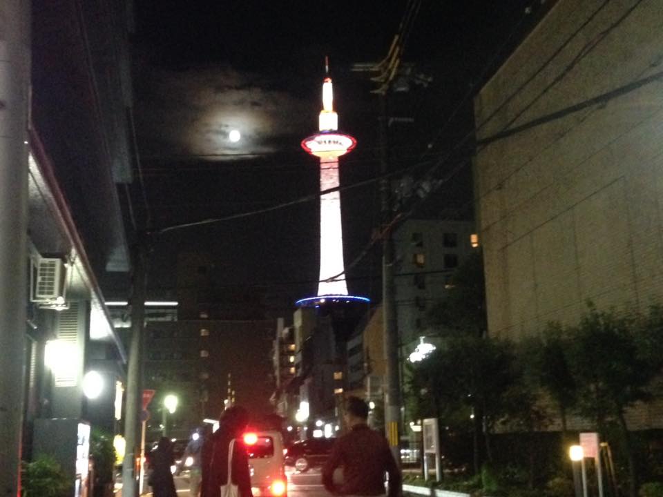 外は雨も上がって、月と京都タワーが綺麗に並んで輝いているのが見えました。