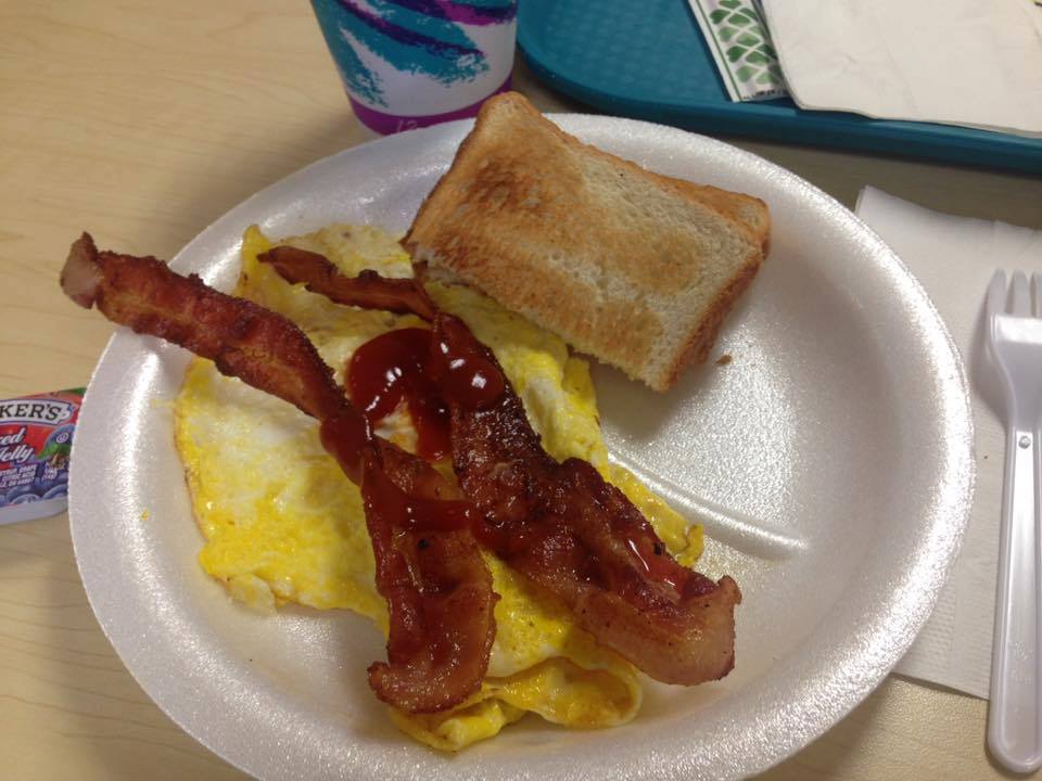 息子は朝からがっつりチキンカツののったメニューを選んでいるけれど、私には無理。これは4ドル60のミニブレックファーストです。このくらいがありがたいですね。
