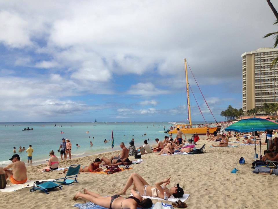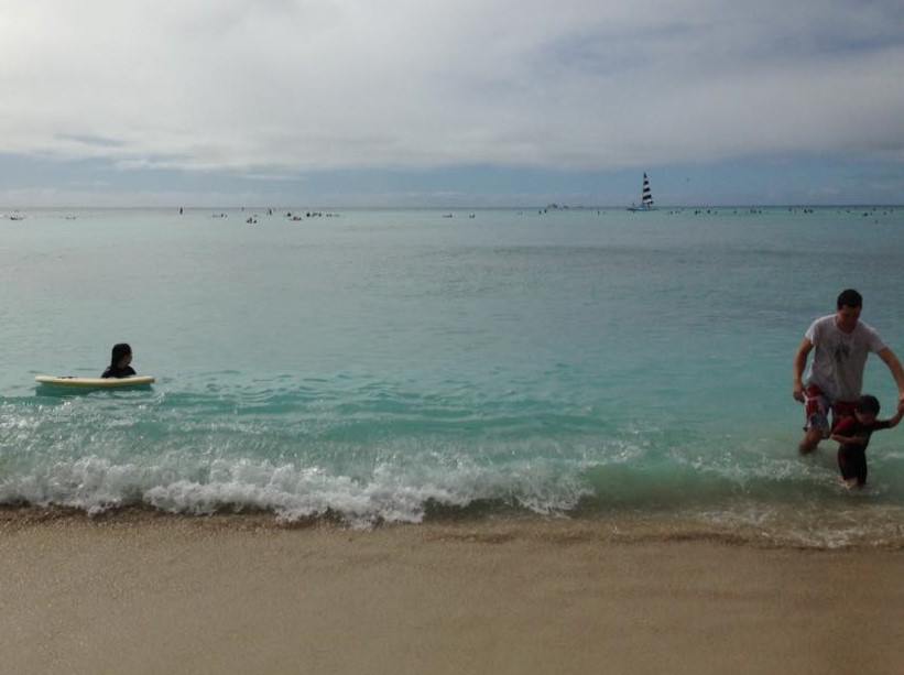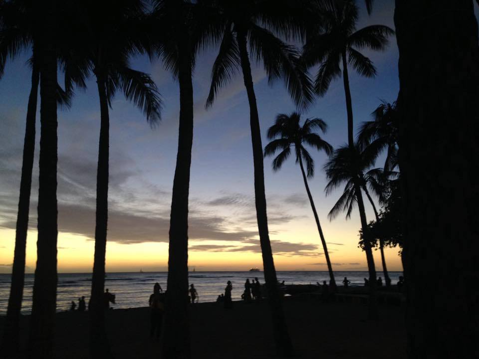 初レンタカードライブはドキドキハラハラで、7時まで借りていたのだけれど、早々に午後5時には返却し、その後はてくてく歩いてワイキキビーチに出て、今度はレインボートロリーでカイムキ方面へ。