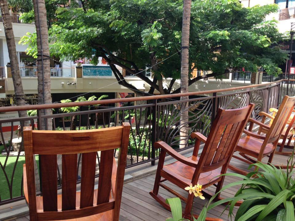 子どもたちがゲームショップなどを見に行っている間に私はこのロッキングチェアでのんびりしてました。ハワイの木、コアウッドの製品です。