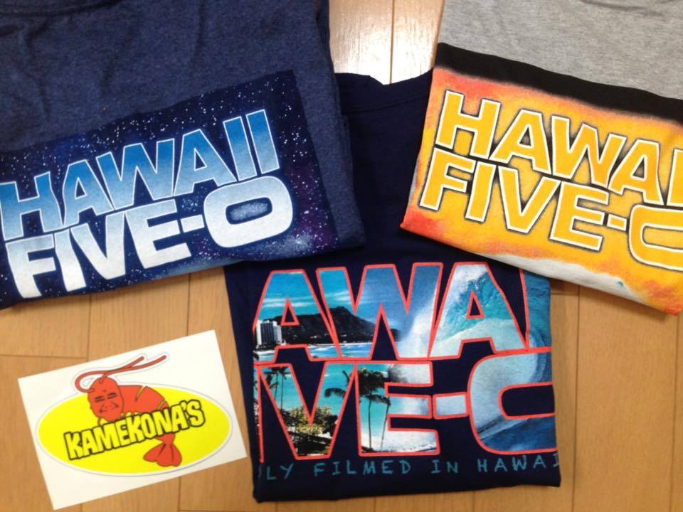 ファイブオーショップでは1枚5ドルとか6ドルとかのステッカーを買うつもりでしたが、「シーズン7のTシャツが入ったよ。2枚買ったらステッカープレゼントするよ」と言われ、ついつい買ってしまいました。1枚25ドルなのでそう高くありません。「あと1枚買ったらステッカーもう1枚あげるよ」と言われたけれど、さすがに・・
