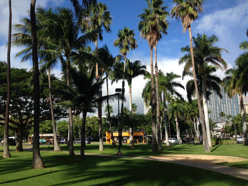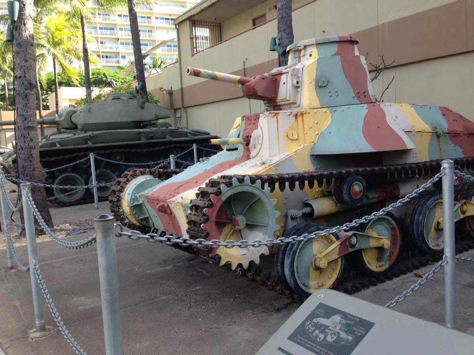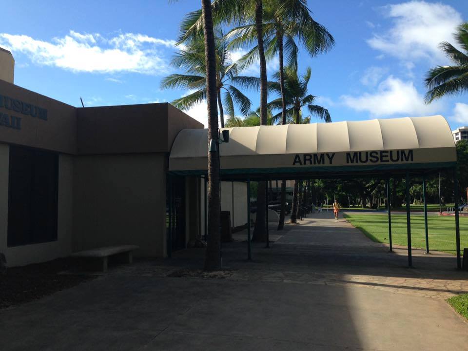 さて、その後「どこに行こうかー」という話になり、夕方に近い時間なので遠出はできなのでワイキキの陸軍博物館を見学することにしました。スマホで閉館時間や休館日を調べ、まだ大丈夫とで出かけました。