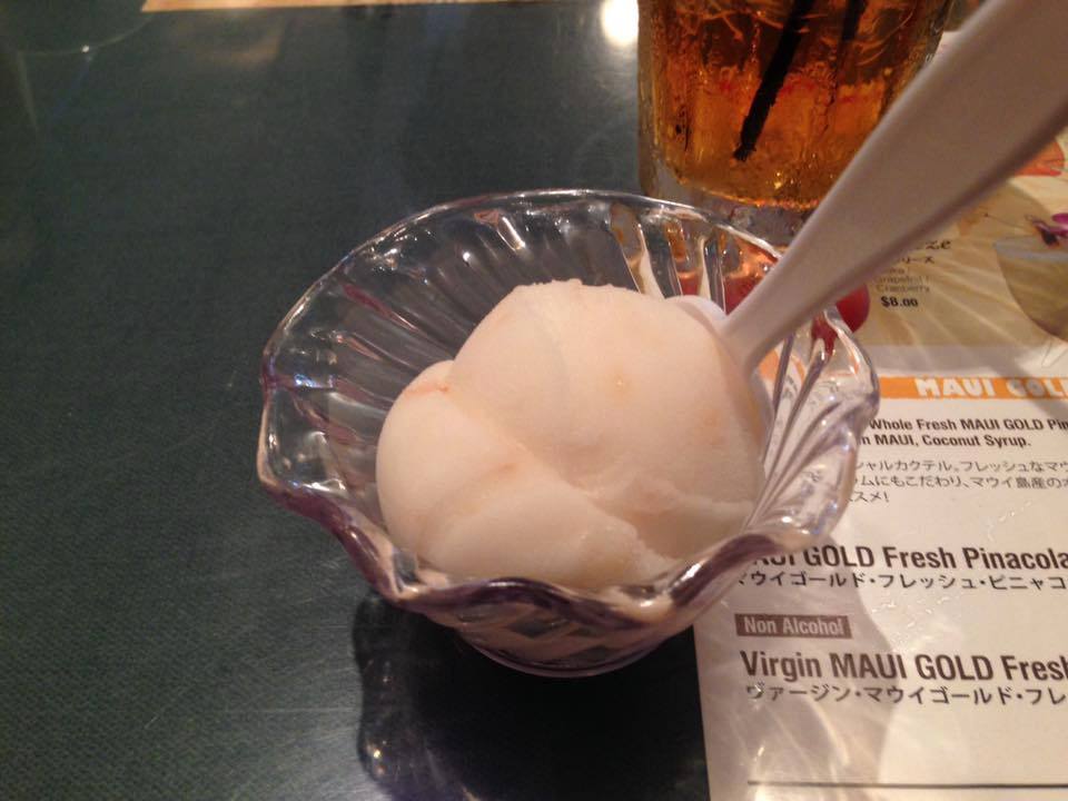 ドリンクが来た時に「乾杯しよう」と、息子が大きな声で覚えたばかりのハワイ語の乾杯の言葉「オコレマルーナ!」と言ったらお店のお兄さんが「意味わかってる?」とニヤニヤしながら近づいてきて、それを一気に飲むのか?というようなことを言われました。「オコレマルーナ」には「乾杯」と同時に「飲み干せ」という意味があるんですって。これにはみんな爆笑。