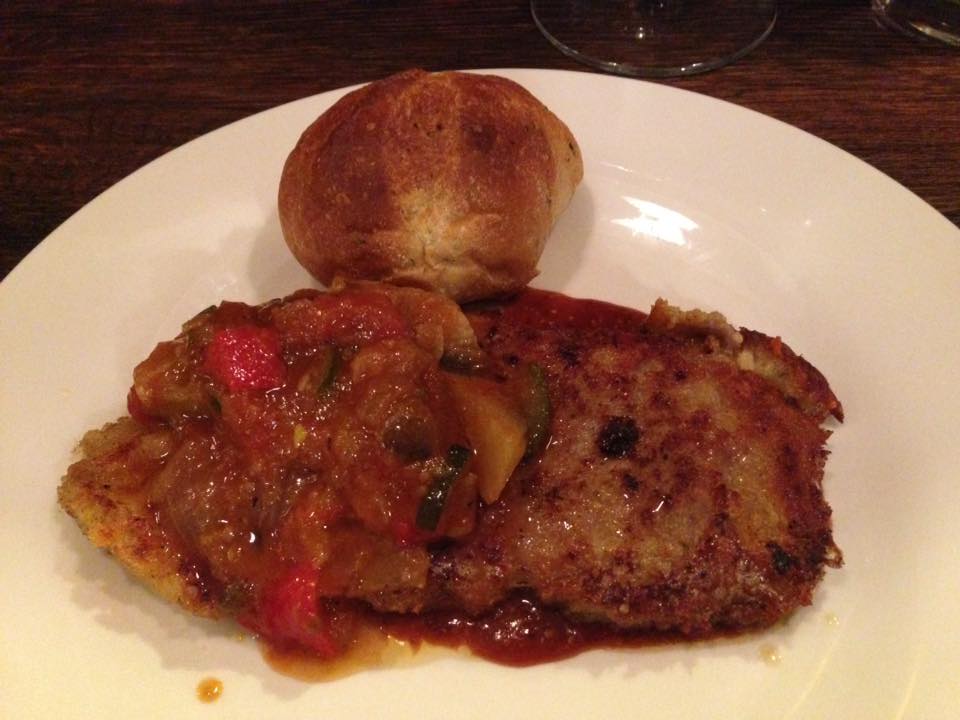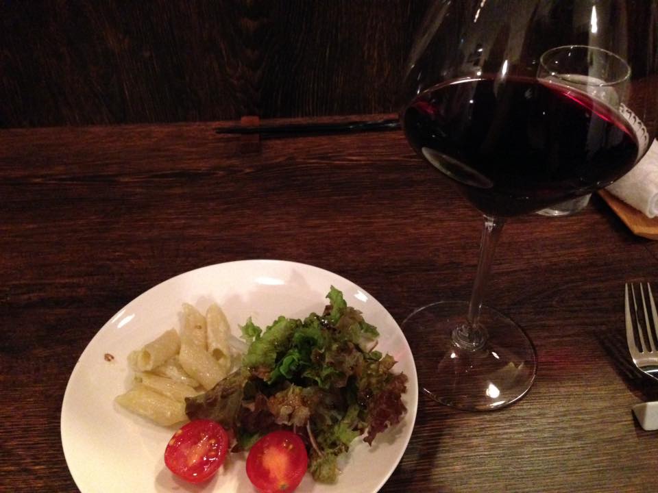 ワインにオードブル。メインは牛ヒレのカツレツ。