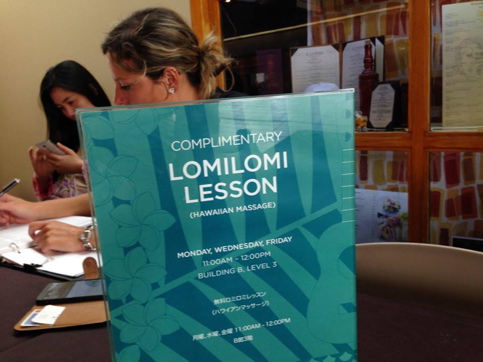 こちらはロイヤルハワイアンセンターでは、フラ体験教室の真っ最中。