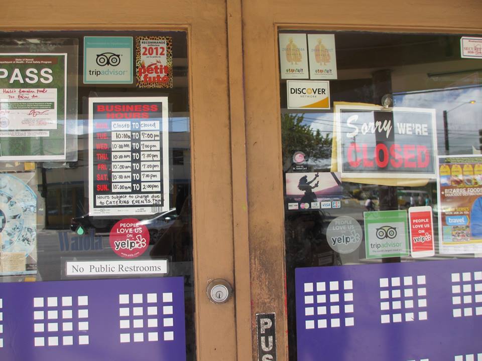 「オノハワイアンフード」が「OPEN」ってなってます。え?やってるの?