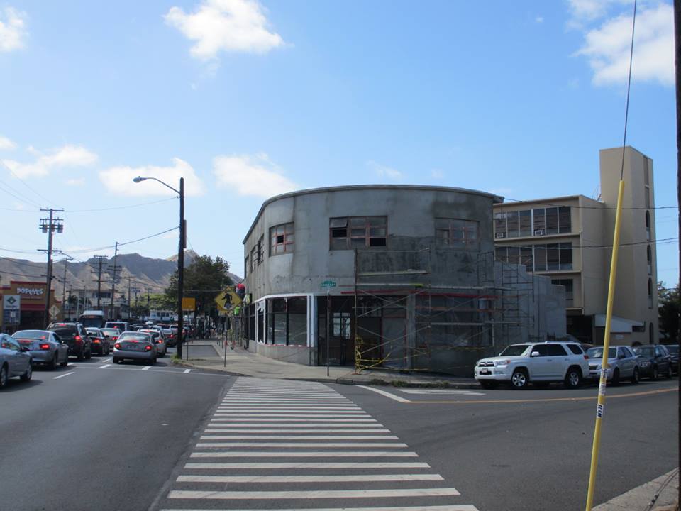 お昼は、前回のリベンジで、伝統的ハワイアン料理のお店、「オノハワイアンフード」で食べようと思っていたのですが、建物全体が足場が組まれていて改装中の模様。