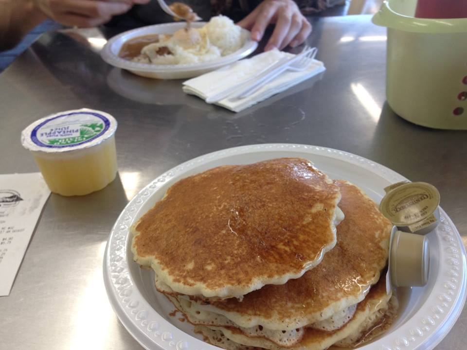 息子はここでもロコモコ。私はパンケーキを食べました。見た目はイマイチだけど、これがふわっふわですごく美味しかった。