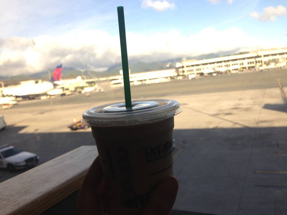 空港の中にはお店もいっぱいあって、搭乗時刻まで買い物したり、コーヒー飲んだり。空港内のスタバで注文をしたら、名前を聞かれました。「タケダです」と言いましたが、出てきたカップには「TAKIRA」と書かれていました。なんかカッコいい!(笑)