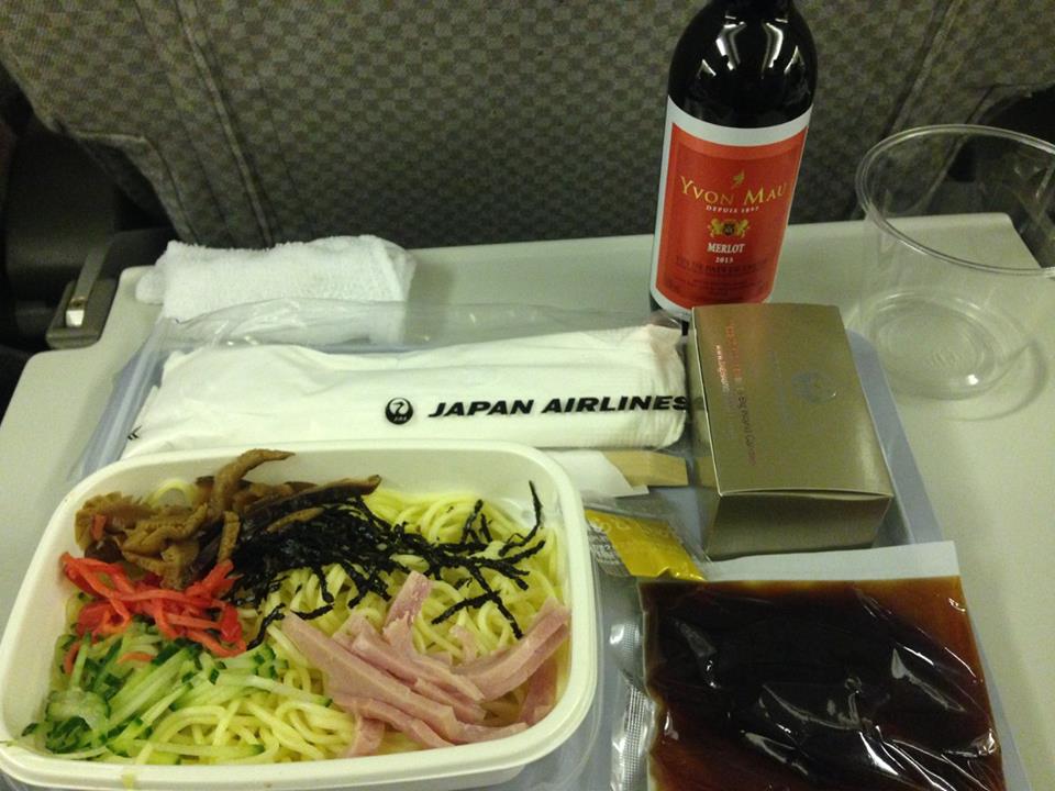 二回目の機内食は冷やし中華でした。ついでにワインおかわり。