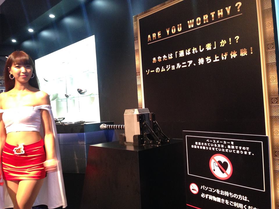 ソーのハンマー、持ち上げに挑戦もできます。が、これも、まだ肩を治療中なので諦めました。