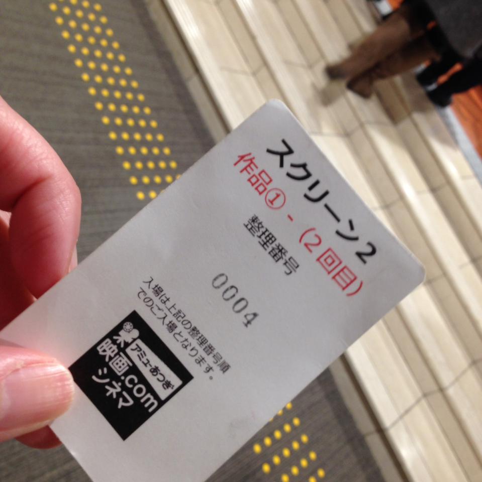 アミューあつぎの映画館、初めて行きましたが、少し変わっていて、チケット購入で渡されるのは整理券。開場時間になると、番号順に入場して自由席。30分前に行って早い番号をゲットしていたので、真ん中の観やすい席に座れました。