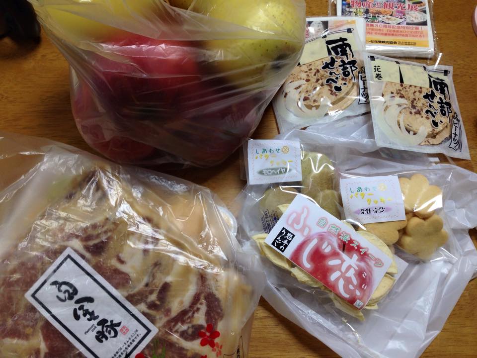 取材のあと、いろいろお買い物しちゃいました。リンゴが8個入って500円とかお買い得でしょ。