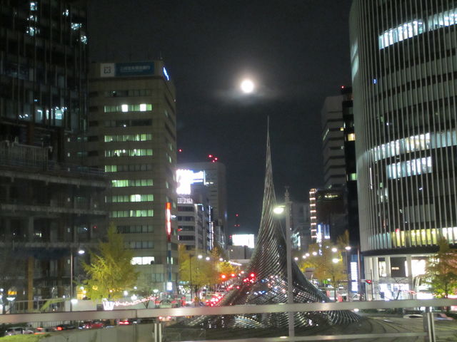 それから、名古屋駅からみんなで寒い夜空に輝く満月も見ました。
