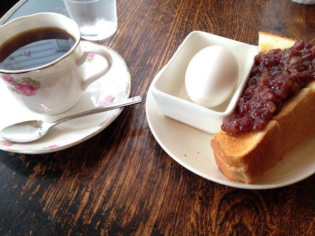 と、フロントで近くのモーニングのあるお店を教えていただき、憧れの小倉トースト。美味しかったぁ♪