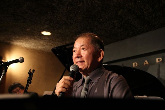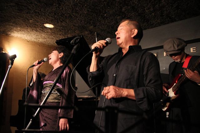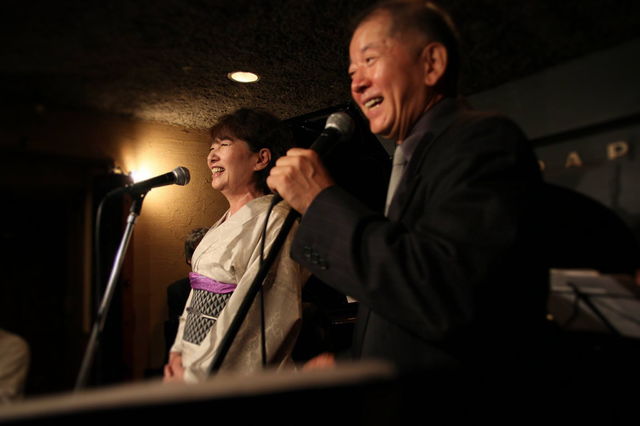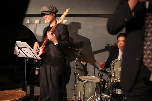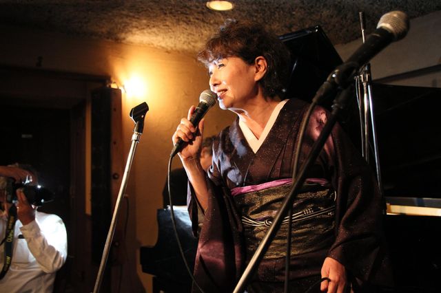 さて、ライブ。なんと、牧ミユキさん、和服です。とてもよくお似合いで写真で見ると演歌歌手のように見えそうですが、ジャズですよ。和服でジャズ。カッコいいよね~。新さんもそれに合わせ、いつもよりシックで素敵です。ネクタイ姿というのも珍しいですね。