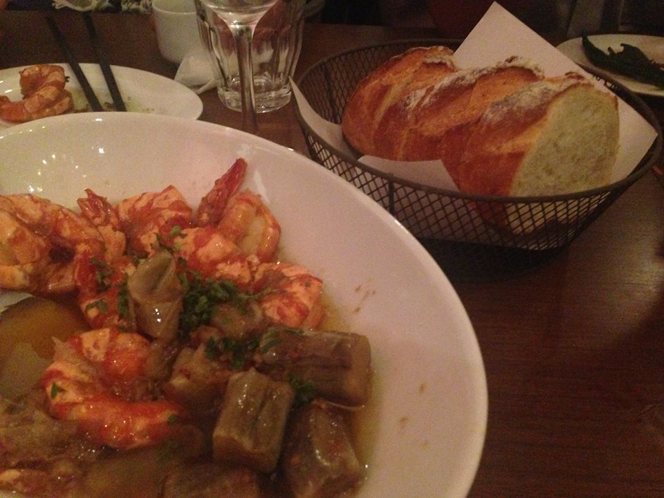 なぜか日本酒なのに、フランスパンとともに食べるエビとナスのアヒージョなんかがよく合います。