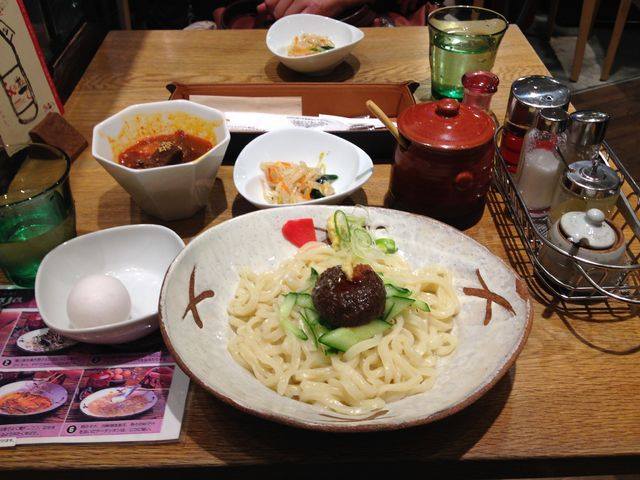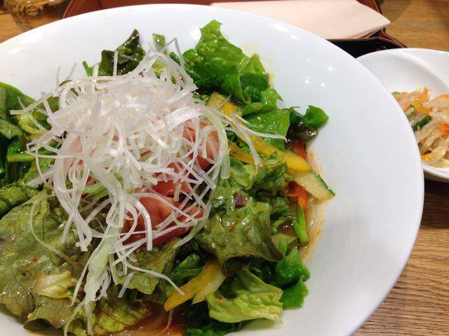 左は姉が頼んだ じゃじゃ麺。右が私の。サラダに見えるけど冷麺です。