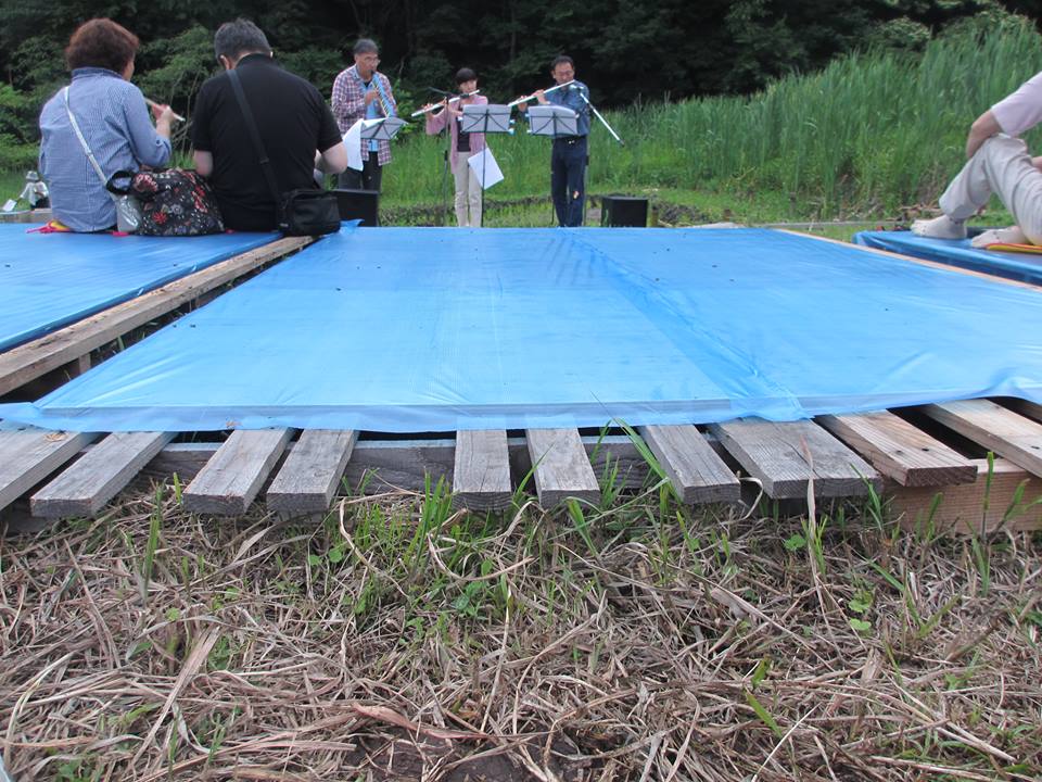 明るいうちには、鳥の声を背景にフルート演奏、ハーモニカ演奏が行われ、とてものどかな雰囲気。そのあと、東海大学の先生からホタルについてのお話があって、日が暮れて初めてから、カエルの大合唱の中、あっちでもこっちでも「あ、見えた!」と声が。その数はだんだん多くなり、光ながらふわふわ飛んでいるのも見えました。感激だわ~。本物のホタル、初めて見ました。