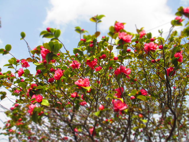 入ってすぐの所で、真っ赤な椿の花がお出迎え。