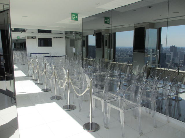 それが、シックな絨毯張りで、色々なタイプの椅子やテーブルやソファがあちこちにあり、クリスタルチャペルまで。BGMに小さめにボサノバが流れていてとてもおしゃれ。