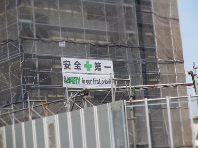 工事中の看板は日本語に英語訳がついてます。基地ならではですね。