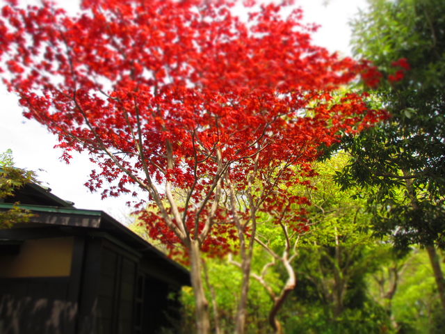 でも、なぜかモミジが真っ赤に色づいていました。以前秋に色づいているのを見たんですが、今年はどうしたんでしょうね。