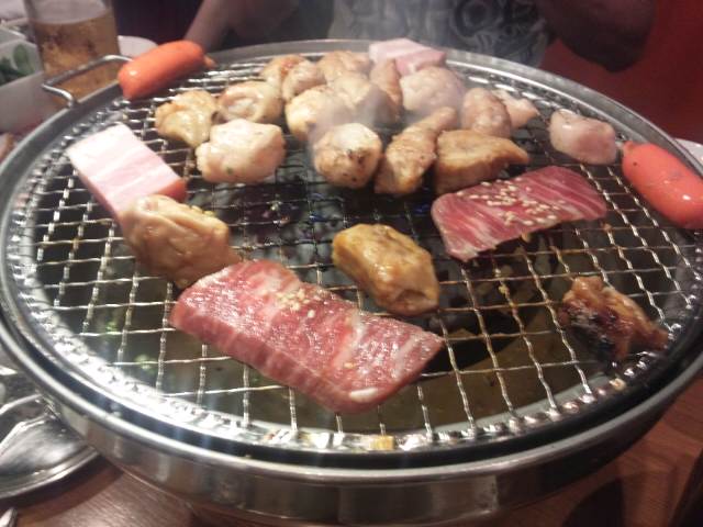 そのあともまだまだ、串焼きとか厚切りベーコンとか赤ウインナーも来たね。