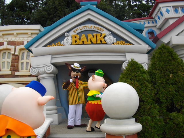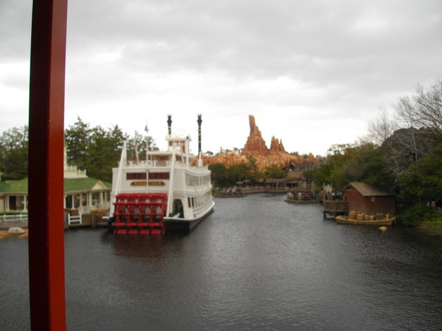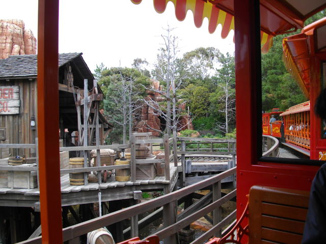 トゥーンタウンをうろうろしていた頃は、良かったけど、ウエスタンリバー鉄道に乗った頃からパラパラ雨が降り始め・・・