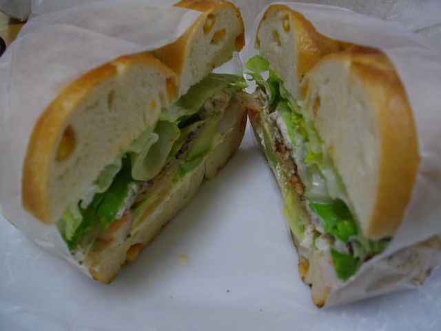 オレンジピールのベーグルでエビアボカドサンドイッチを作ってもらいました。うま~~♪