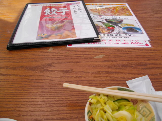 キャベツの漬物がついて、健太餃子とシソ餃子が5個ずつで550円。美味しかった♪