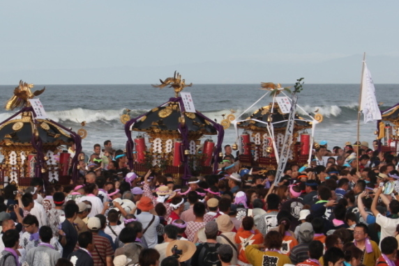 「浜降祭」というのは、茅ヶ崎市と寒川町のお神輿が一斉に夜明けの海を目指し、浜に勢ぞろいして禊を行うというお祭りなのです。