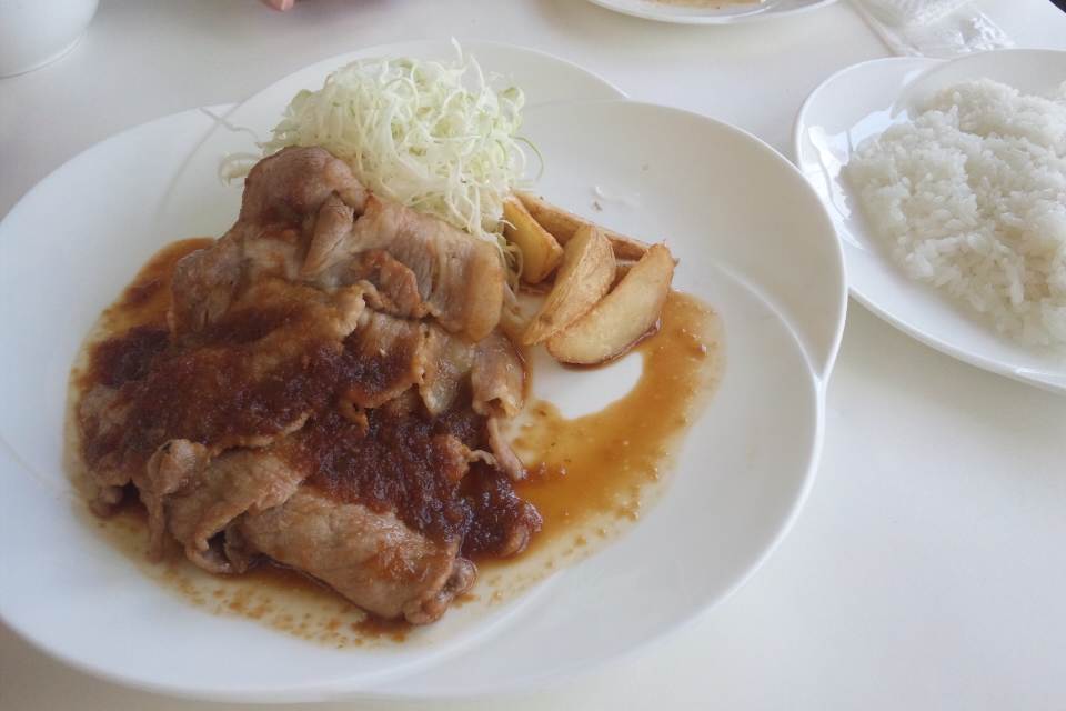 ボリュームたっぷり、岩中地豚の生姜焼きランチは1200円。