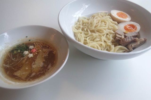 つけ汁はあっさりすぎず、くどすぎない。とんこつと魚介がミックスされた和風味。